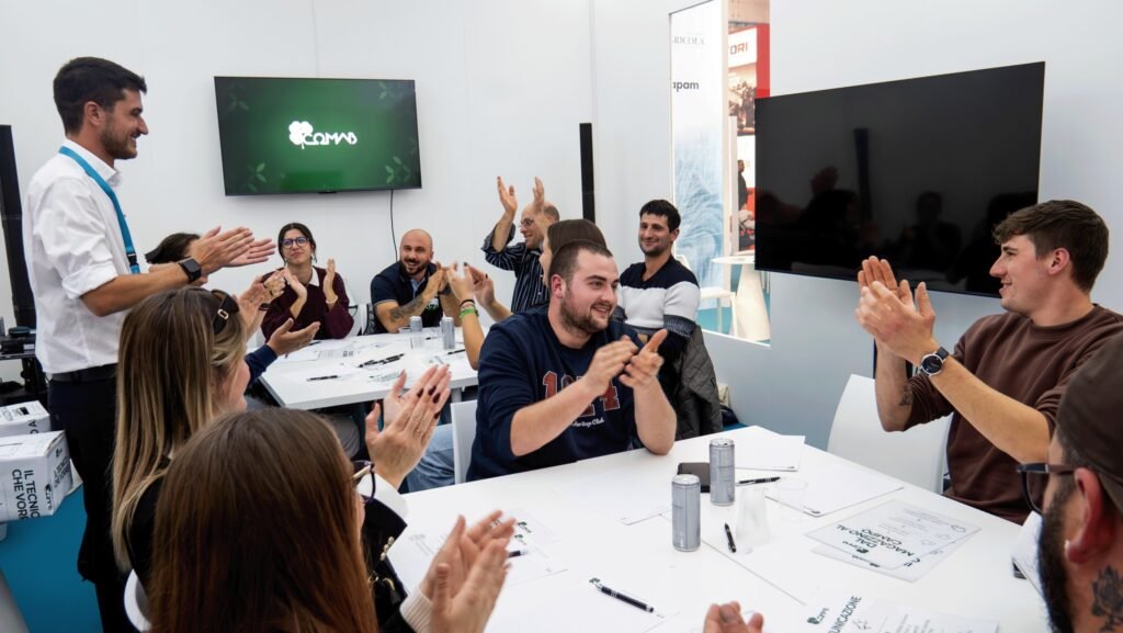 Lo spazio espositivo di 253 mq, rivisitato con un impiego strategico dei materiali per migliorarne la visibilità, ha offerto un ambiente funzionale con aree per networking e ristoro. Un elemento centrale è stata la Glassroom, una sala riunioni concepita nel 2022 per favorire lo scambio di idee, l’organizzazione di incontri tecnici e la promozione di nuove relazioni, che ogni anno aumenta il numero di appuntamenti su richiesta delle cooperative aderenti allo stand.